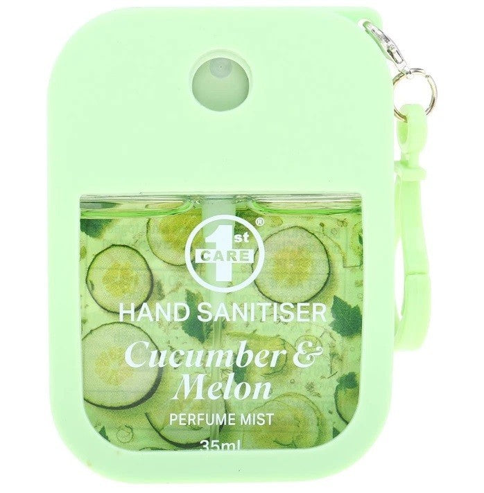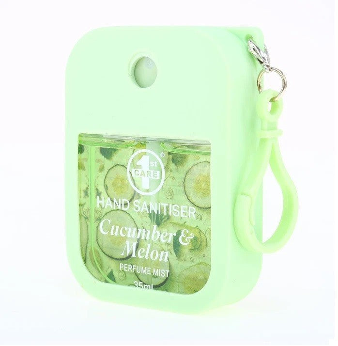1x Hand Sanitizer Spray Perfume Mist 35ml Silicone Case Clip Cucumber & Melon