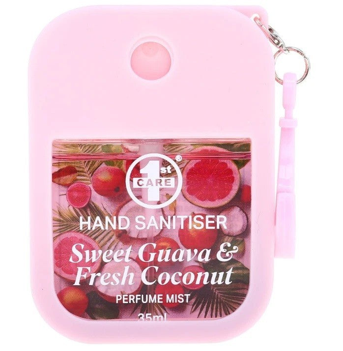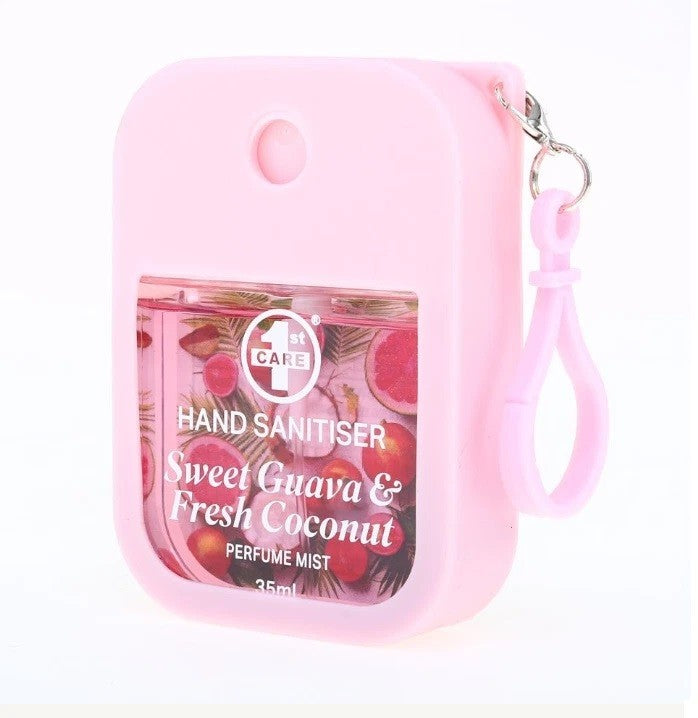 1x Hand Sanitizer Spray Perfume Mist 35ml Silicone Case Clip Guava & Coconut