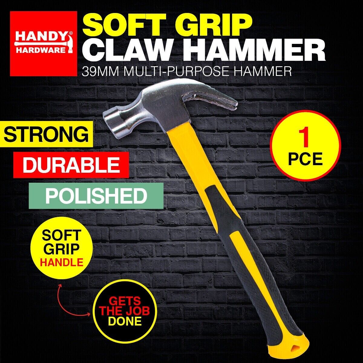 Handy Hardware This 39mm multi-purpose Claw Hammer is a useful tool for projects whether at home in your workshop or on a construction site. Strong and durable it has a claw for extracting nails and a hardened steel head for durability and performance. Designed with a soft grip handle for comfort it will assist you in getting that job done.