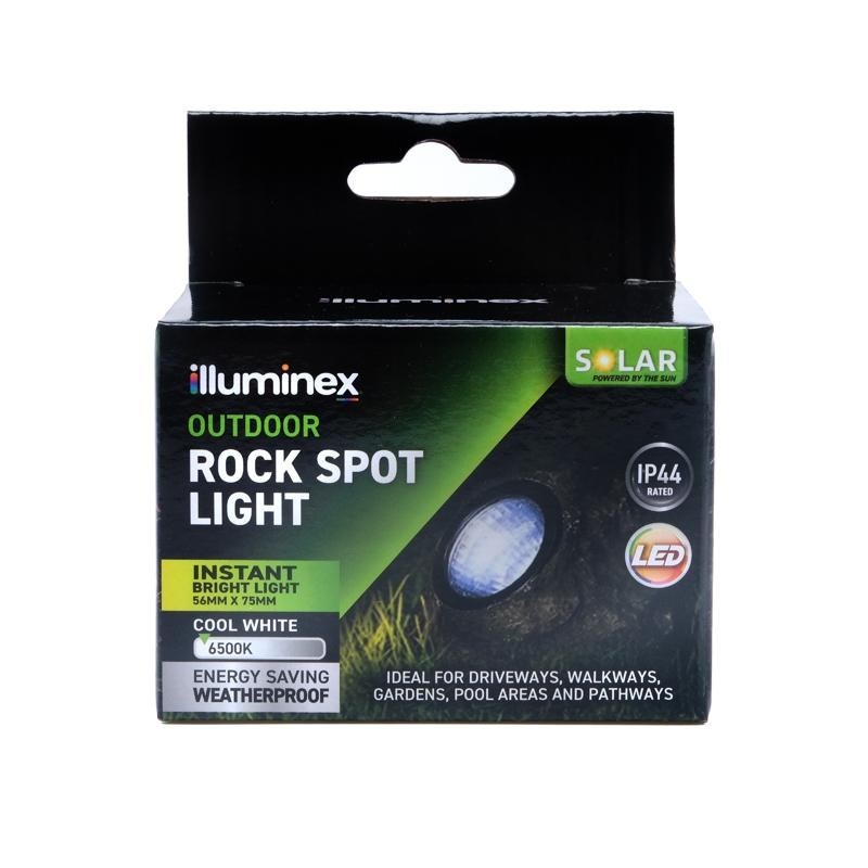 illumine Ideal for illuminating patios pathways driveways or to create focus areas within your garden these solar rock spot lights emit cool white lighting and are weatherproof.