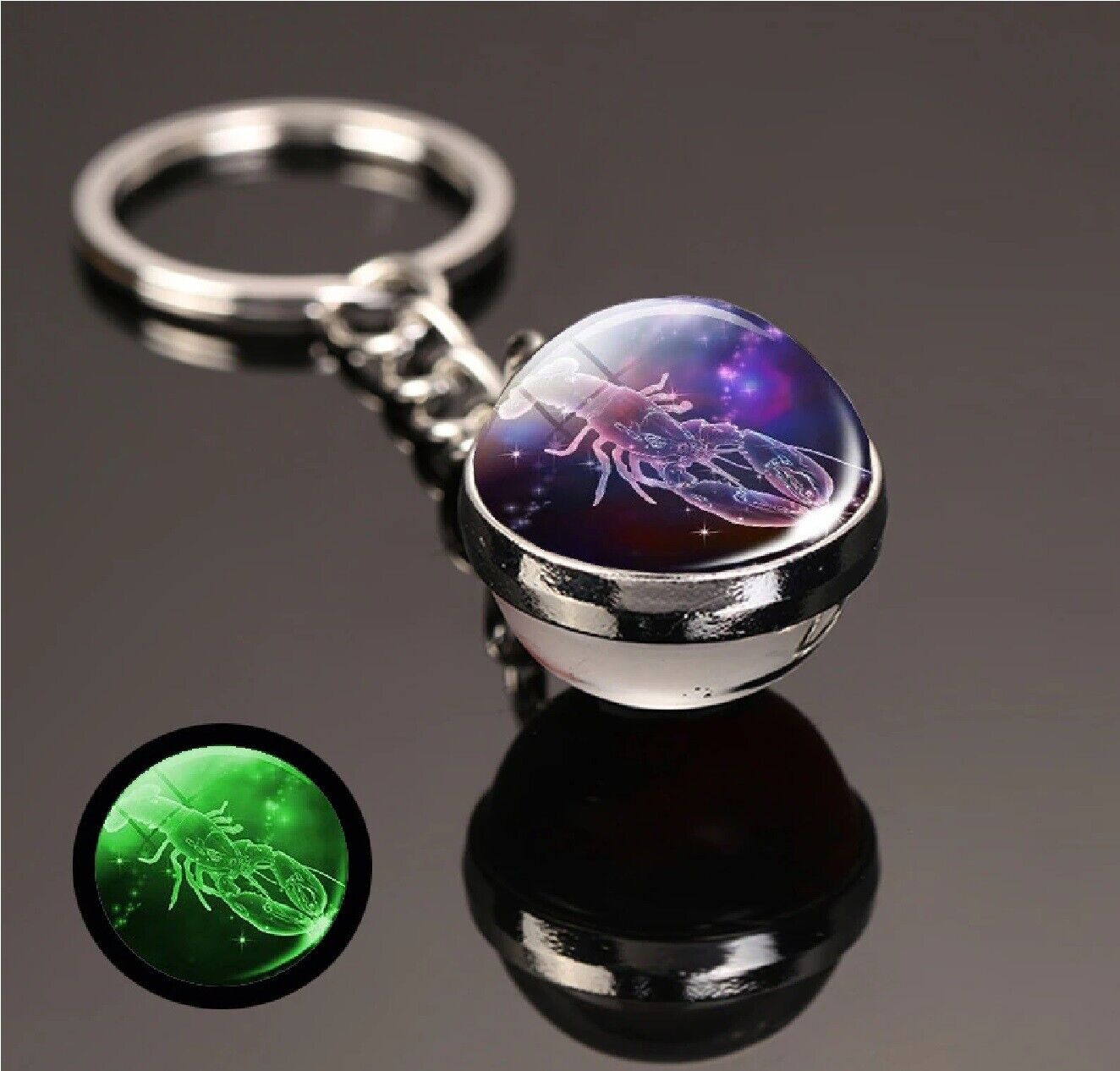 1x Keychain Constellation Keyring Luminous Glass Ball Pendant - Cancer