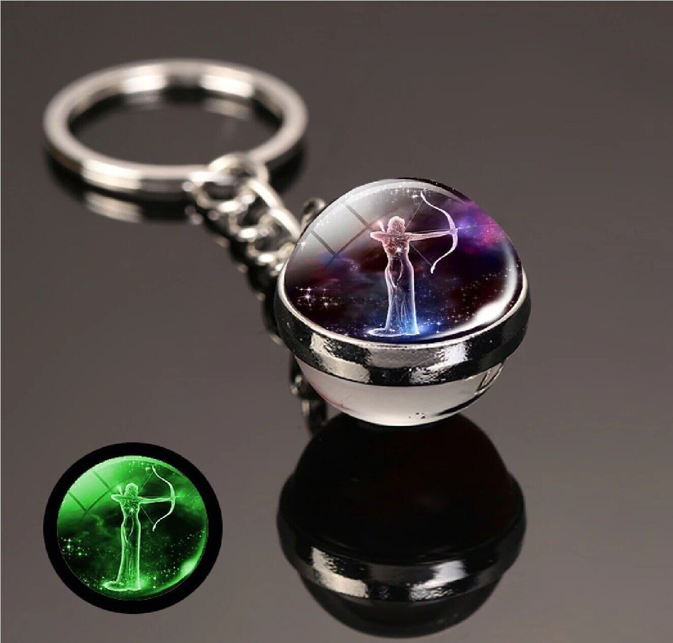 1x Keychain Constellation Keyring Luminous Glass Ball Pendant - Sagittarius