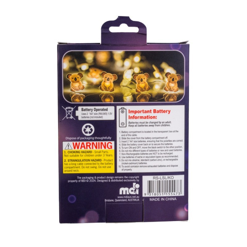 Bring cosy warmth to your space with these cute koala string lights!Features 20 LED koala lights on 2 metres of cable
