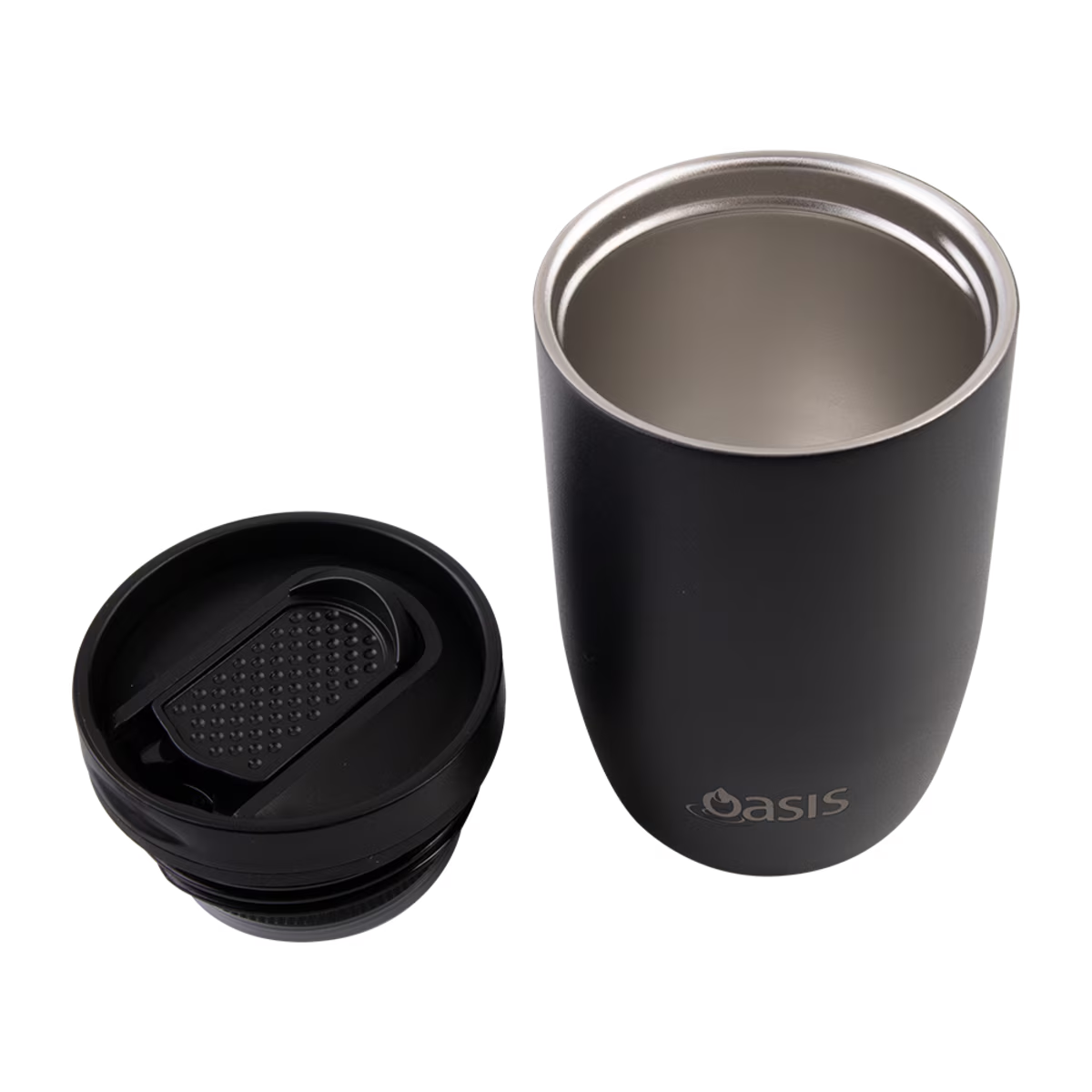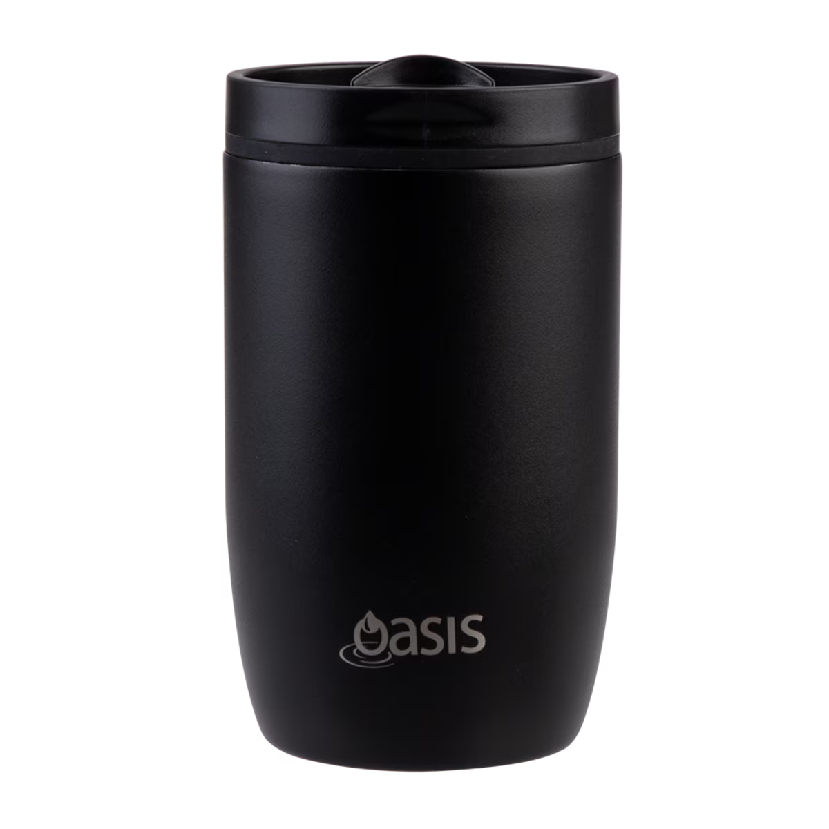 Perfectly sized for your daily coffee or tea, the Oasis Stainless Steel Travel Cup blends sleek design with dependable performance. Crafted from premium 18/8 stainless steel inside and out, it features double wall vacuum insulation to keep drinks hotter or cooler for longer. The leakproof slide-action lid allows for easy sipping and mess-free travel, while the durable powdercoat finish resists chips and scratches. Safe, sustainable, and effortlessly stylish, it’s the travel cup you’ll reach for every day.
