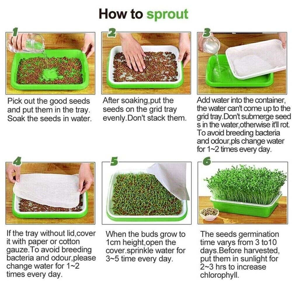 Heat and moisture preservation,high budding rate and grow faster. 3 sets of Seed sprouter tray (Insulation cover, inner tray with bottom tray), Insulation cover works well to keep a humid and warm environment for seedlings and clones, great for getting your seeds and plants underway early.