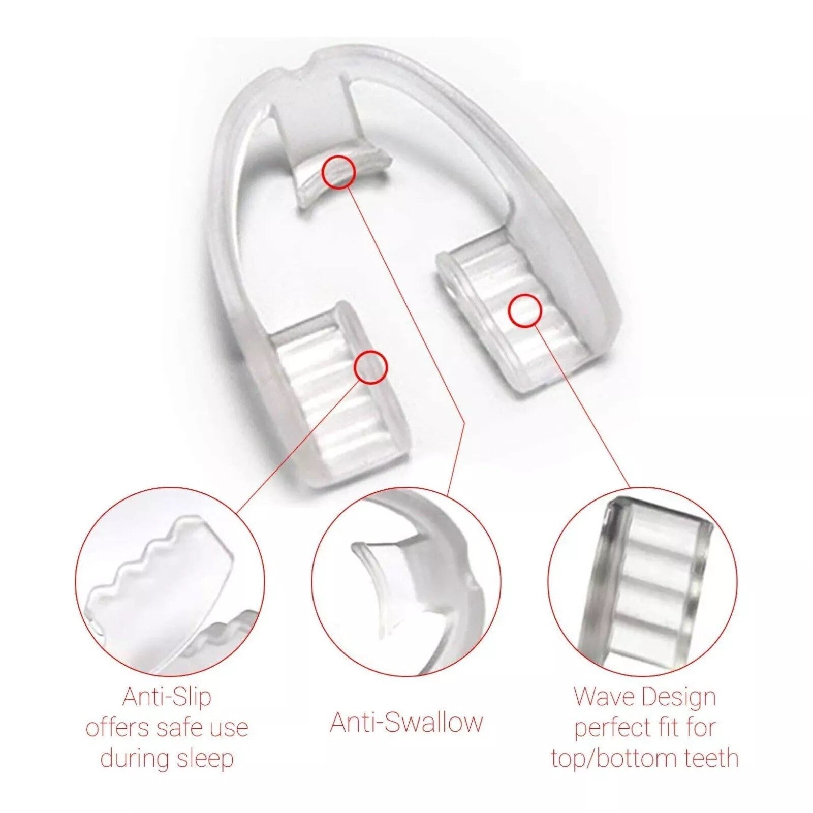 Teeth guard can be used for upper and lower jaw alike. Simply flip the guard in the direction that that you need it.