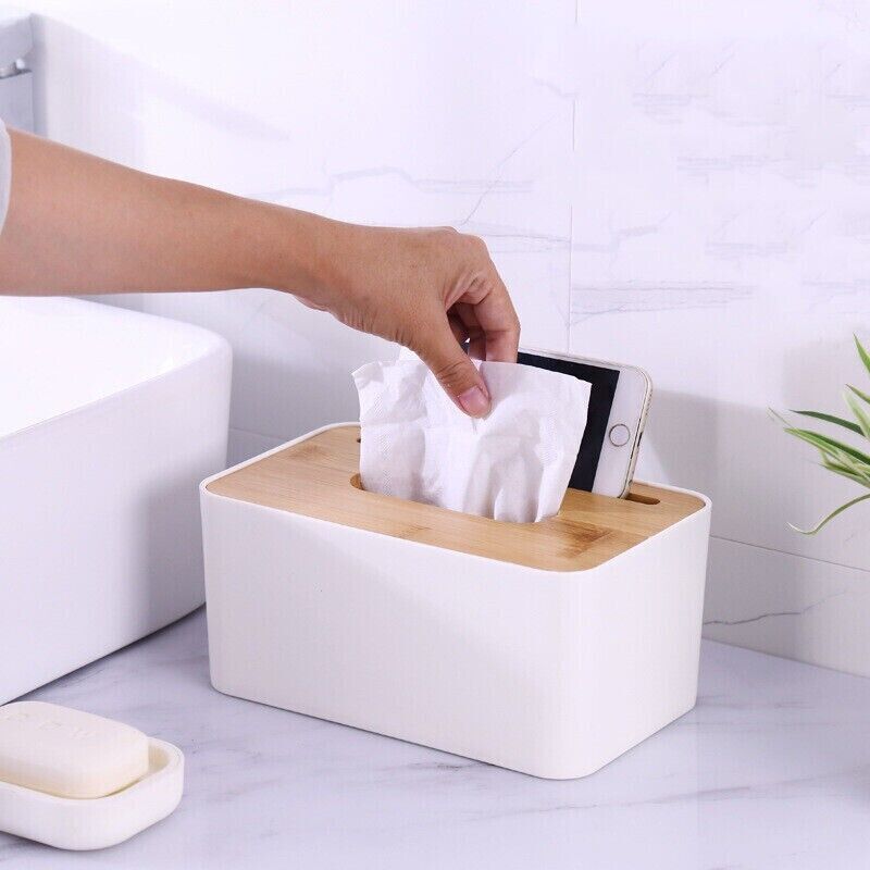 1x Tissue Box Rectangle Dispenser Paper Storage Holder Napkin Organizer Wooden