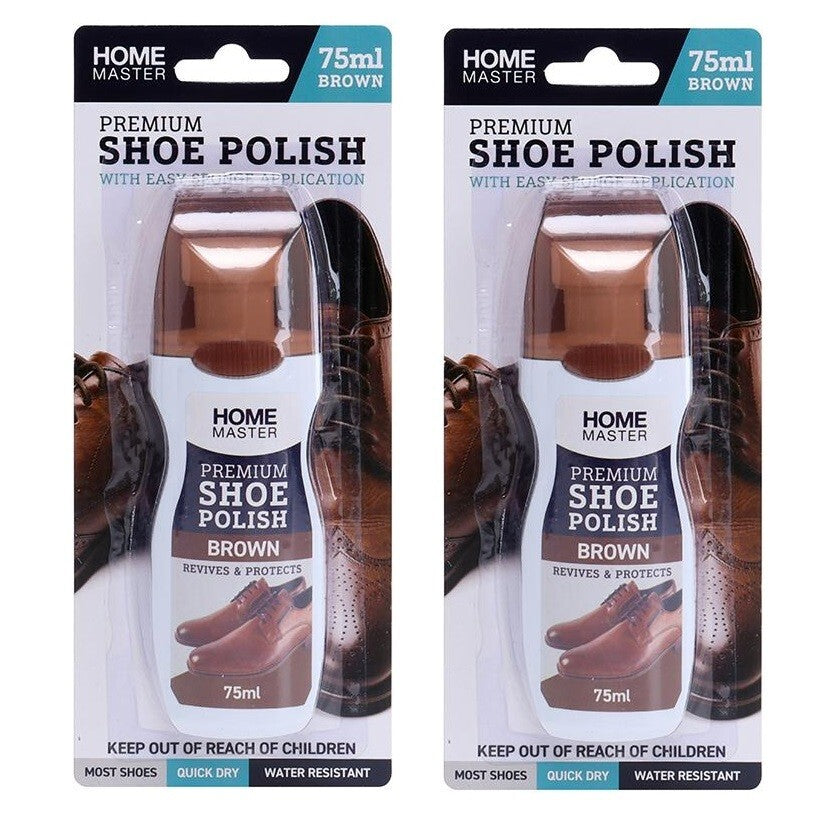 2 pcs Premium Brown Shoe Polish Sponge Tip Home Master Water Resistant 75ml