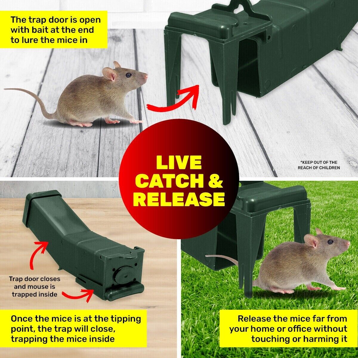 Pest Control Catch and release mouse traps without the use of poisins or insecticides. With a highly sensitive trap door mechanism, they are reusable and suitable for indoor and outdoor use.