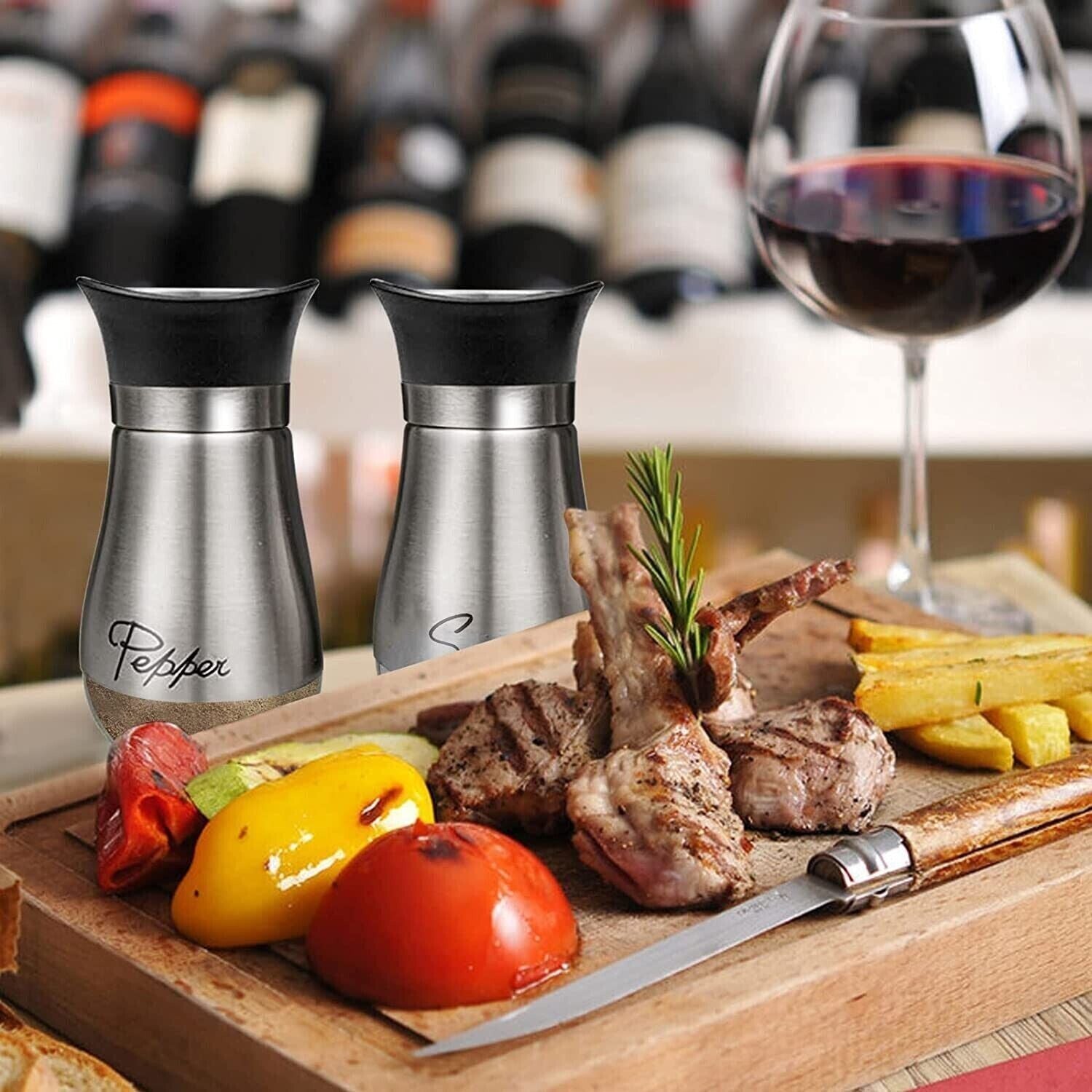 2 pieces Salt And Pepper Shakers Set Premium Stainless Steel Set - Black
