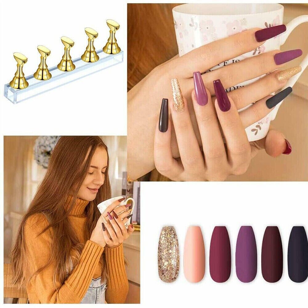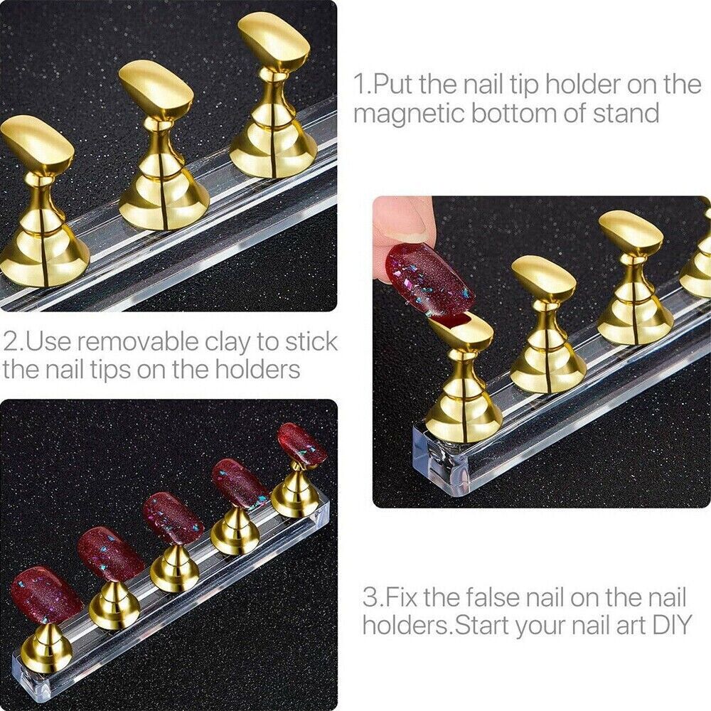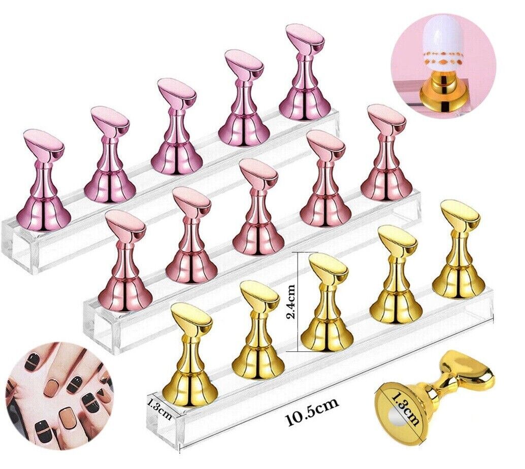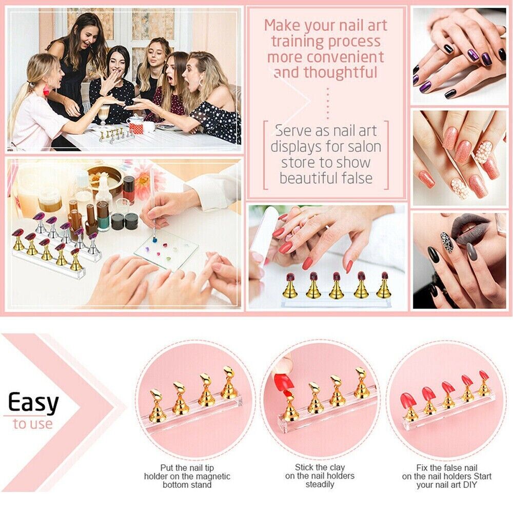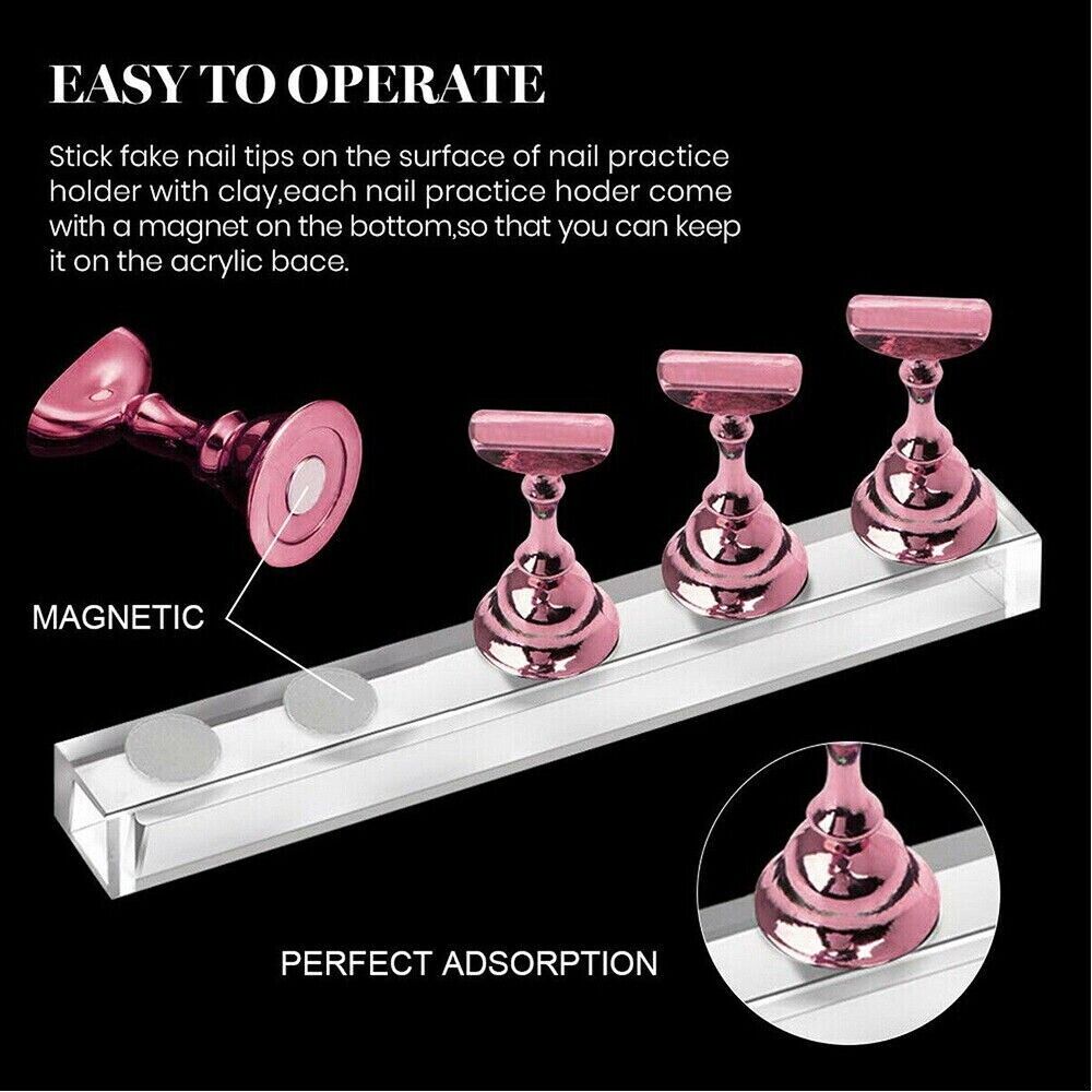 2 Sets Acrylic Nail Art Practice Display Stand Magnetic Tips Holders Assorted