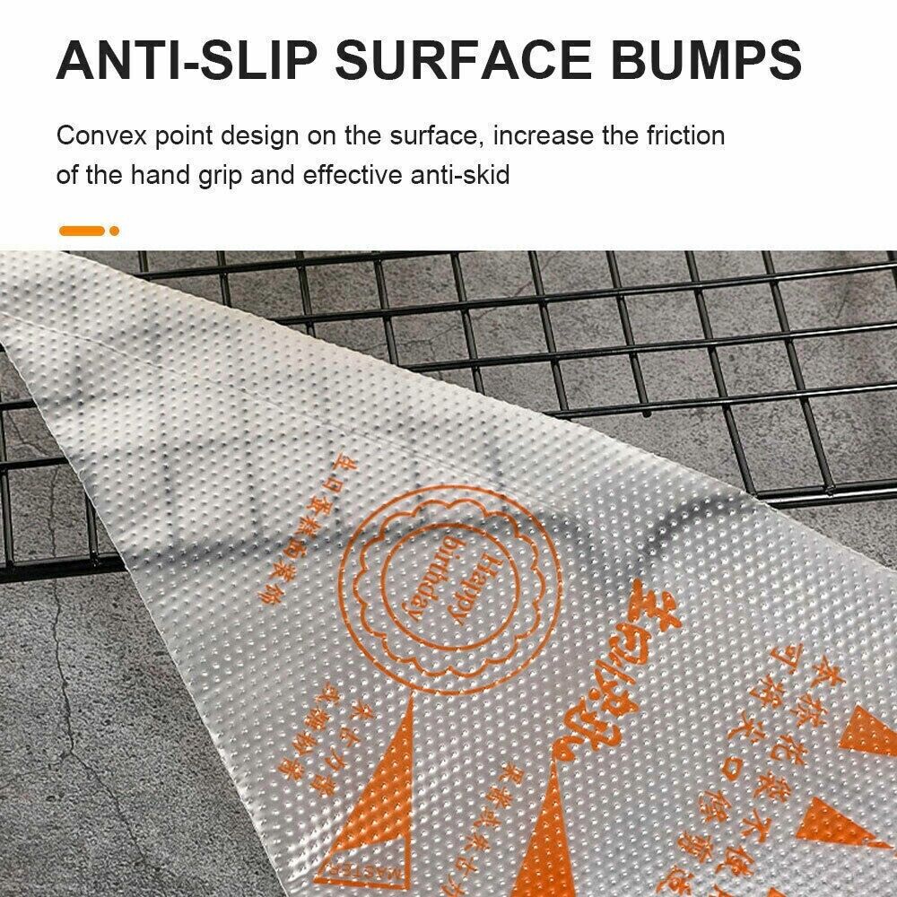 These Disposable Pastry Bags are made of thick plastic, food-grade safe and odorless which won’t be easily tear up even under great tension. The convex points on the surface can help user better handling the Pastry Bag, making the cake decorating goes fluently in harmony.