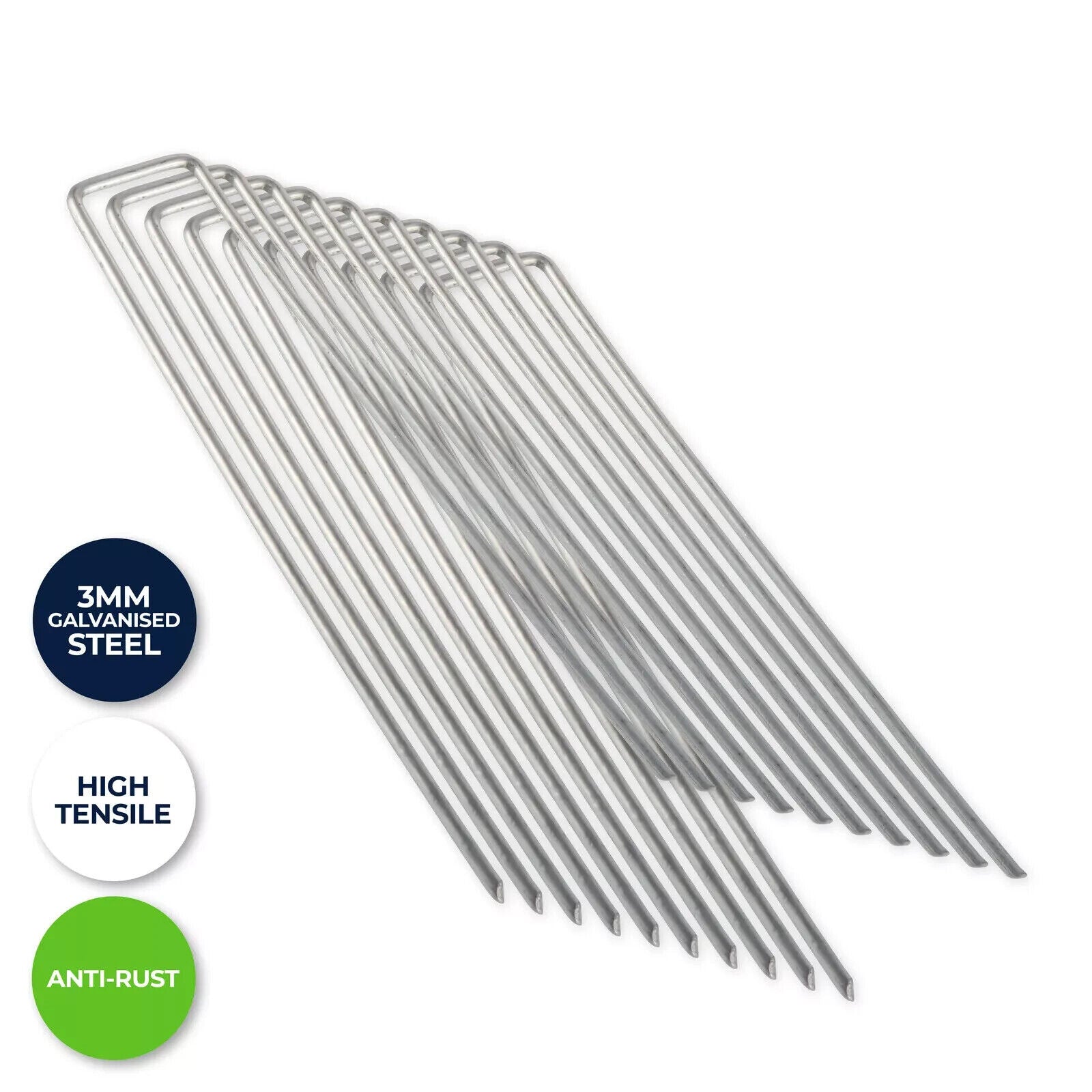 20PCE Garden Greens Weed Mat Pins Galvanised Steel Anti Rust 3mm x 150mm