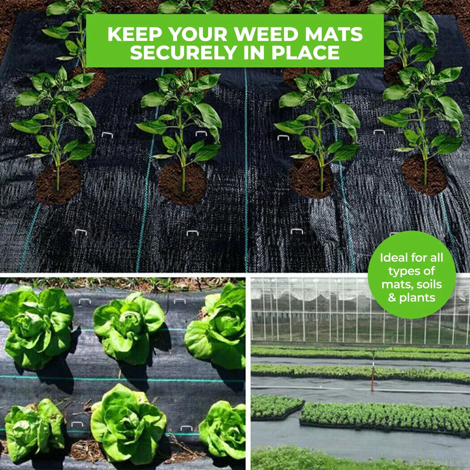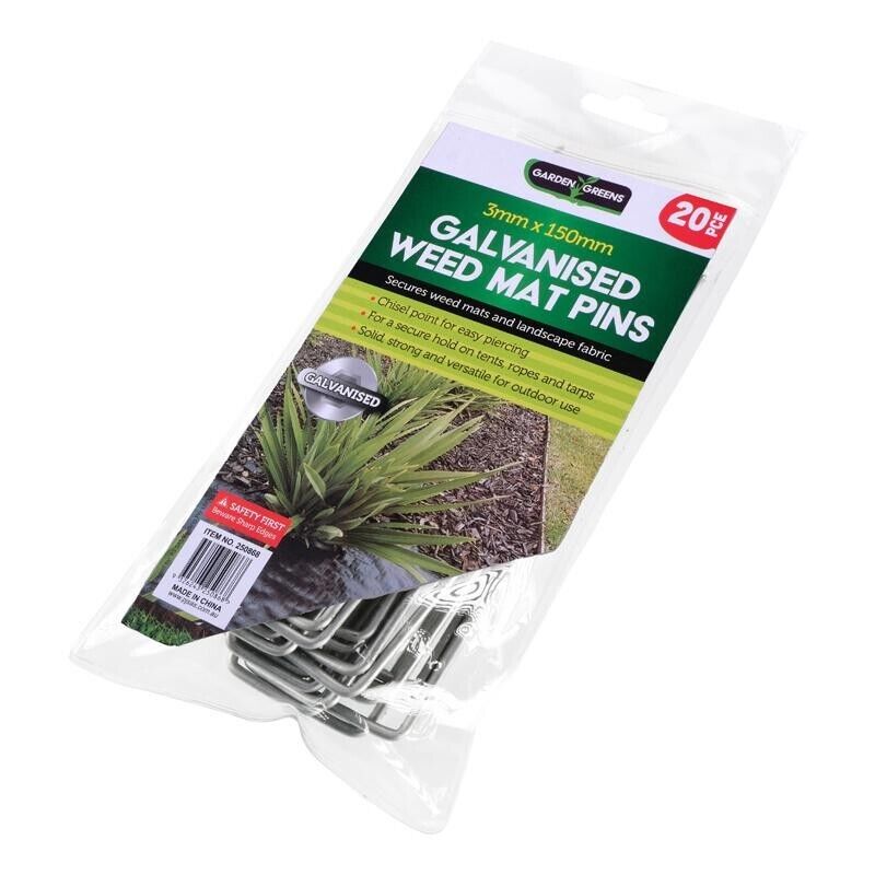 Garden Greens® Hold down your weed mats using these Weed Mat Pins. With long prongs and wide tops, your mats will be kept securely in place. Ideal for all types of mats, soils and plants.