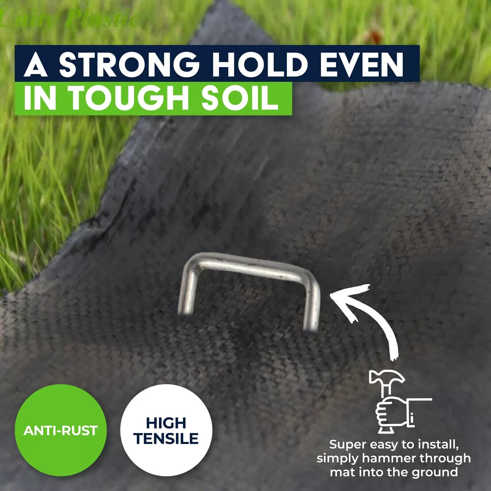 - Pierces Through and Holds Firmly in a Variety of Soils and Weed Mats