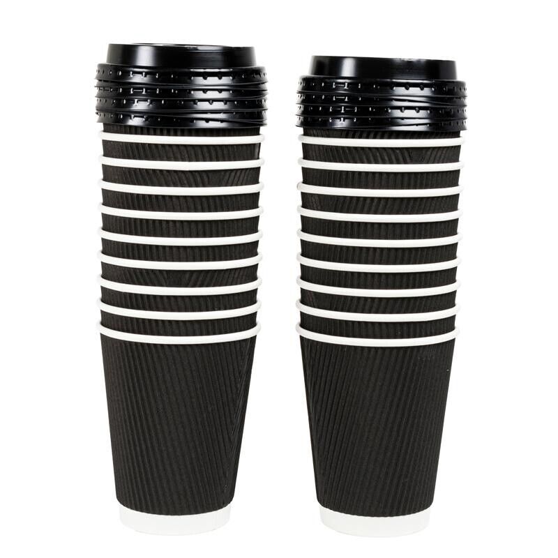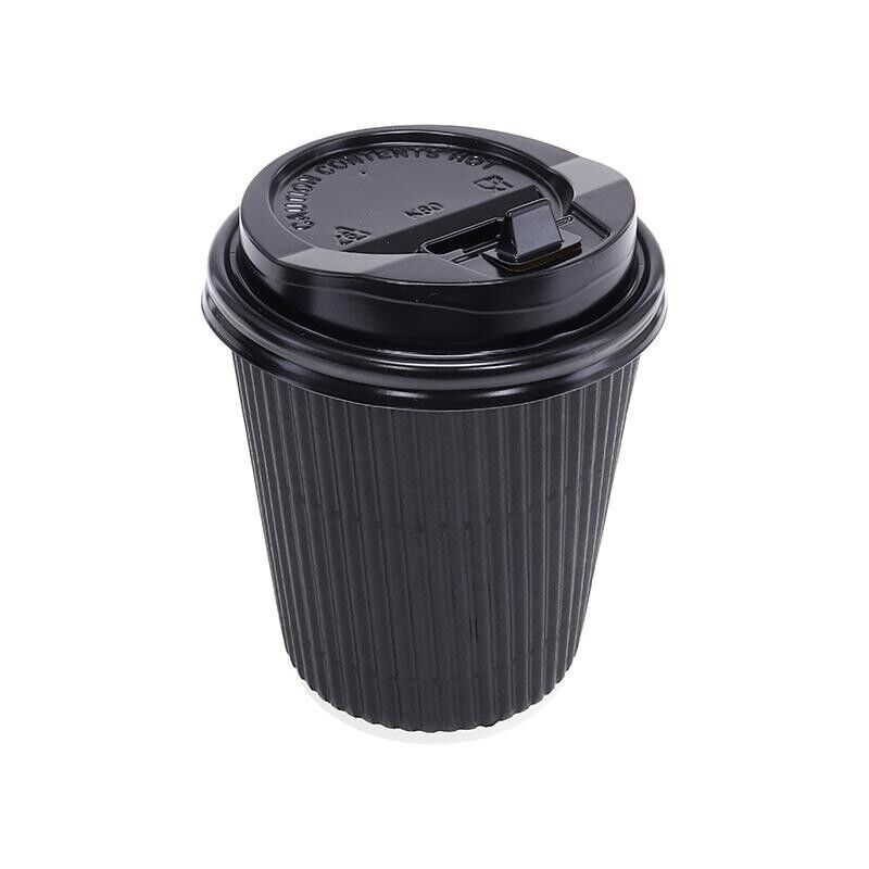 20pcs Cofee Cups With Lids Paper Cup Drinkware Coffee Rippled Takeaway - 230ml