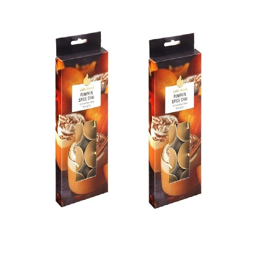 Package Includes: Box with 20pce Scented Tealight Candles Pumpkin Spice Chai