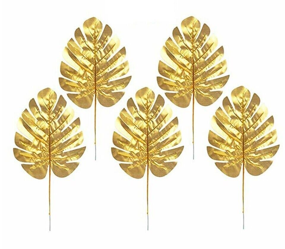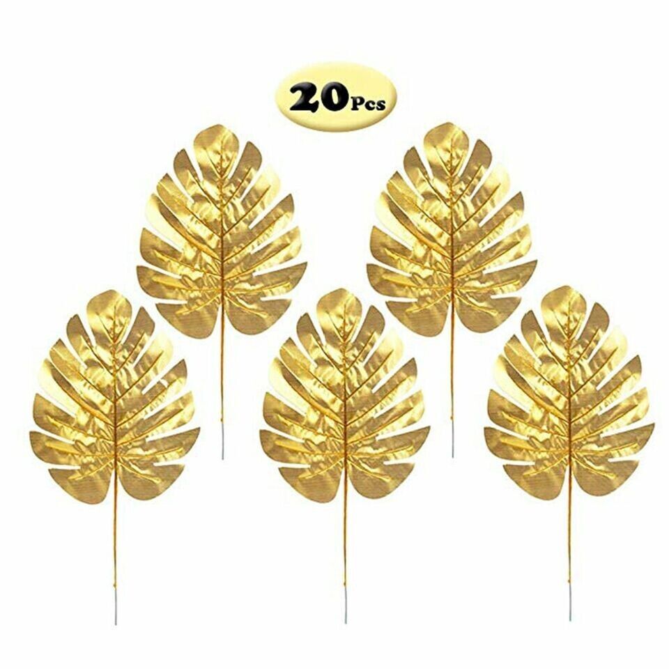 20Pcs Tropical Hawaiian Artificial Palm Monstera Leaves Party Luau Gold 39cm