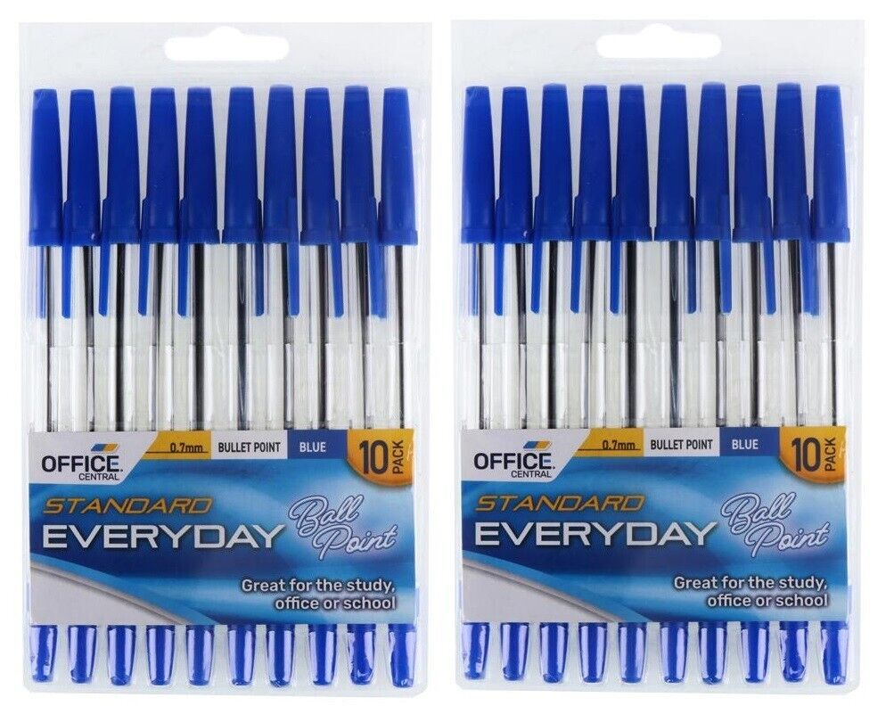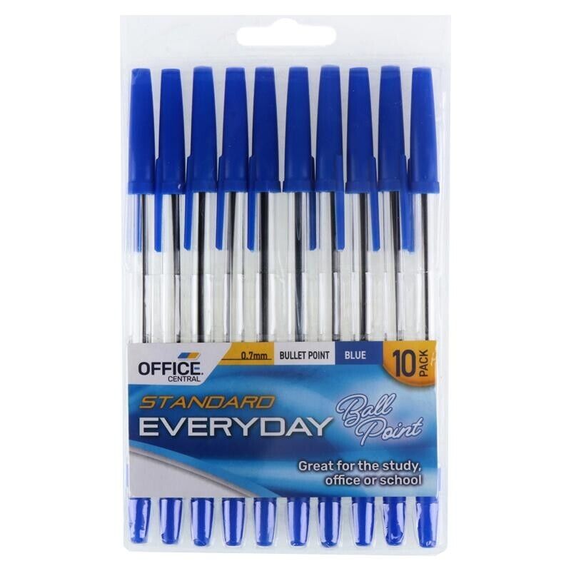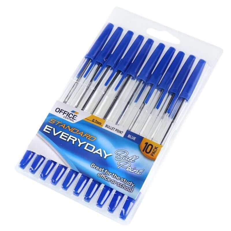 These essential ballpoint pens come in a pack of 10 each with a blue ink colour.