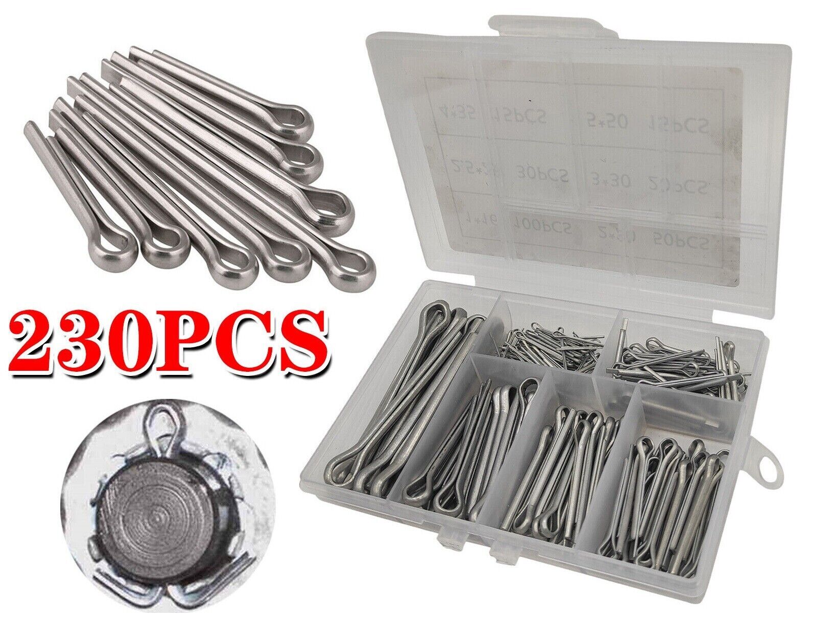 230pcs Stainless Steel Cotter Pin Assortment Set Split Pin Value Kit 6 sizes