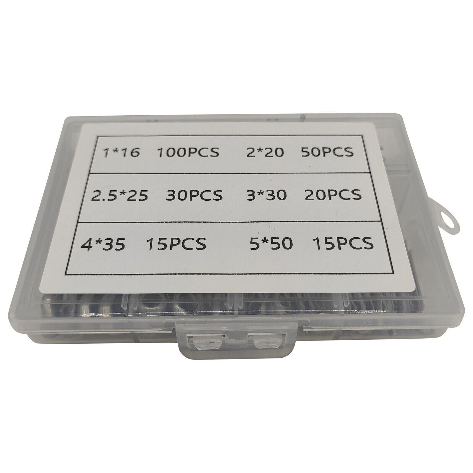 This set contains 230 cotter pins in different sizes, packed in a transparent plastic box with sufficient quantity to meet your needs.