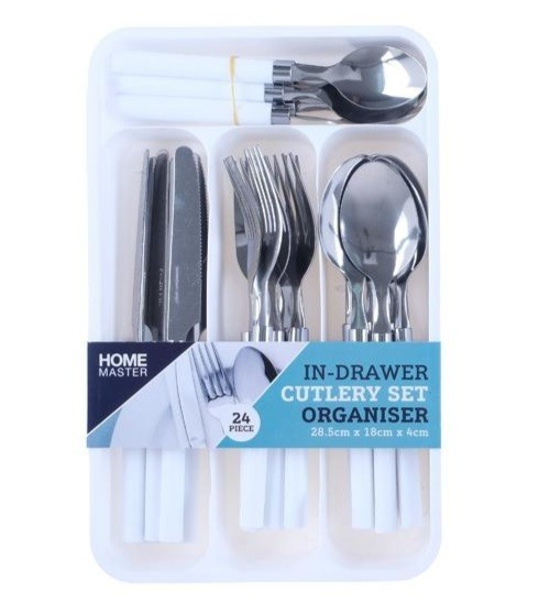 The Home Master Kitchen 24 pc Cutlery set is just what you need to keep your kitchen drawers organised and tidy. This set includes a cutlery tray along with spoons, foks and knives.