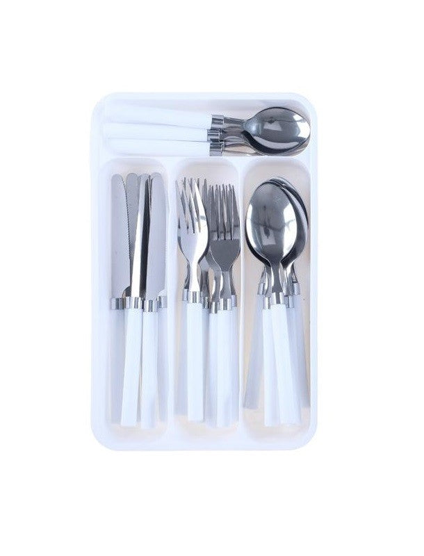 24 Piece Cutlery Set with Tray Fork Knife Spoon In Drawer Organiser White