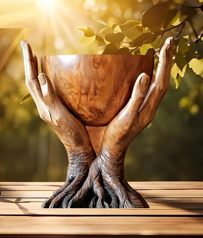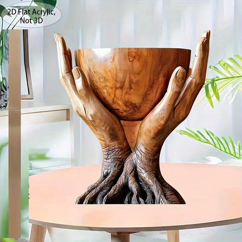 2D Flat Bohemian Style Wooden Hand Bowl Sculpture Home Office Decor