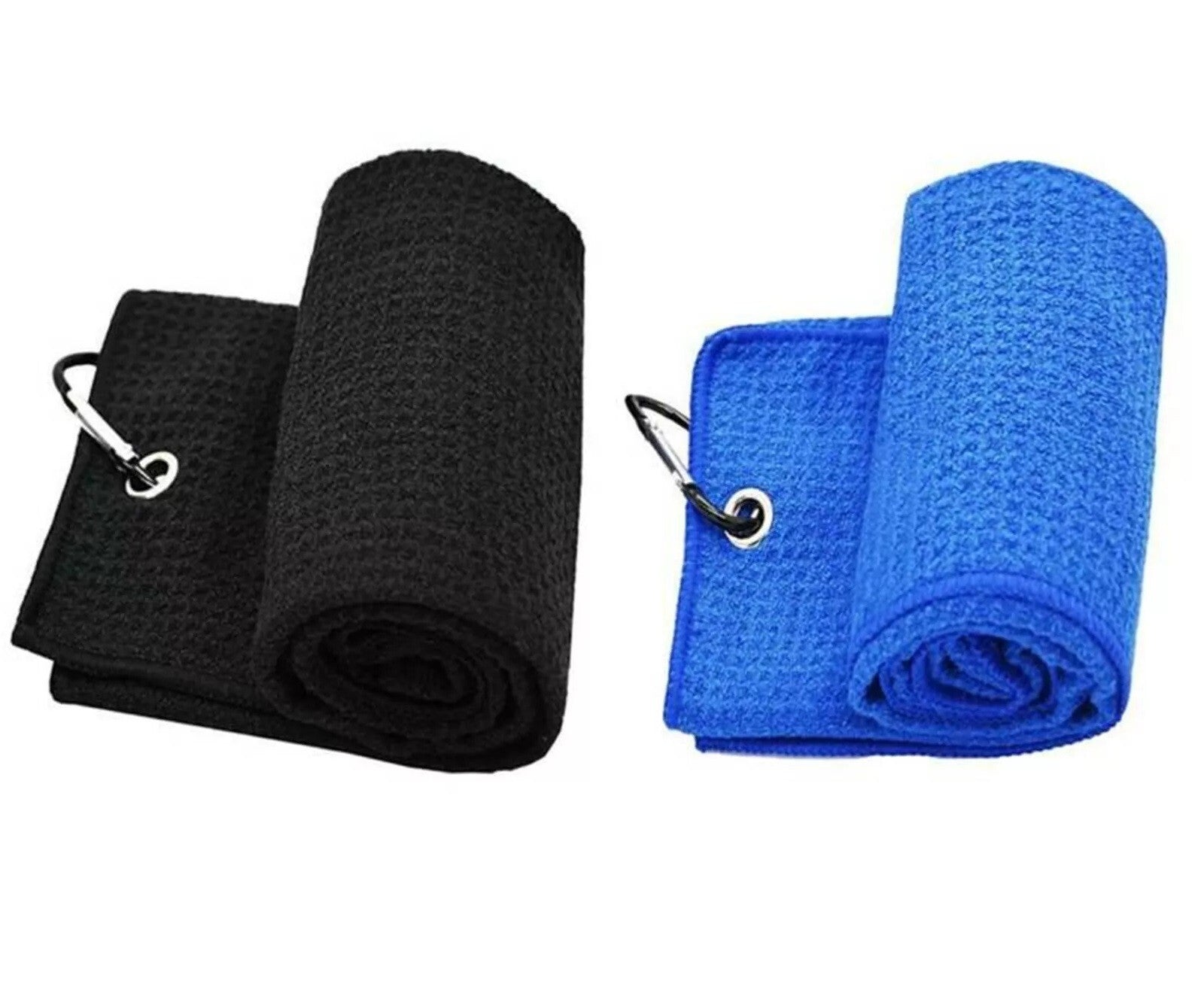 2pc Golf Towel Waffle Pattern Cotton Carabiner Cleaning Towels Club Ball Cleaner