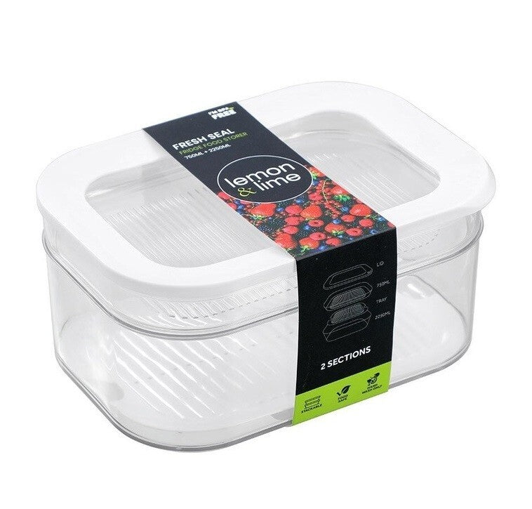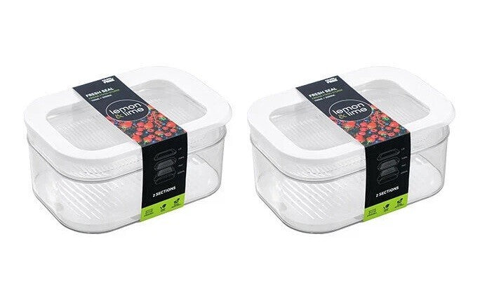 Package Includes: 2 pieces Lemon & Lime Fresh Seal 2 Section Fridge Food Storer 750ml+2.250ml