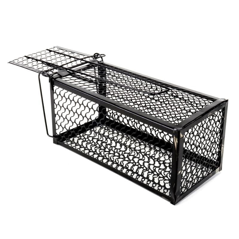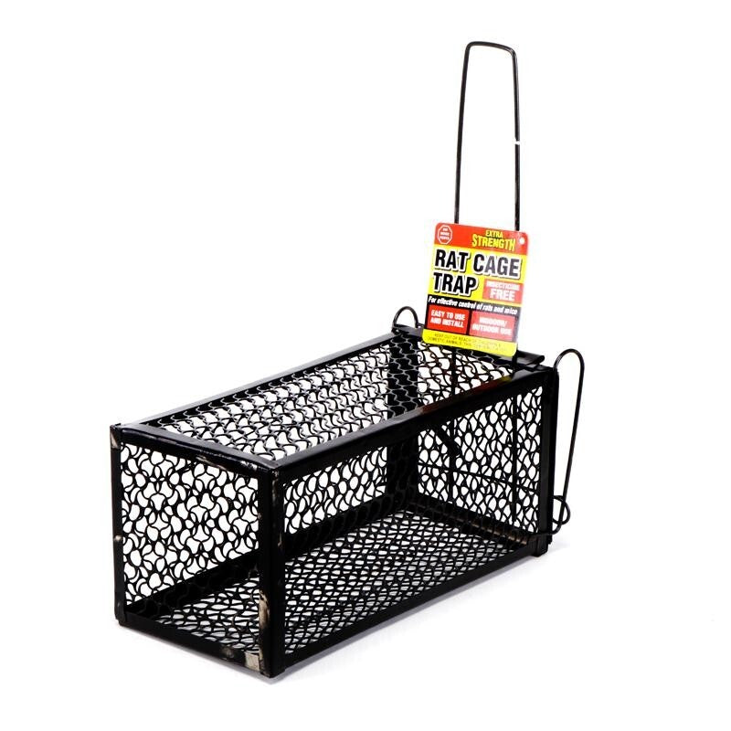 Effectively and humanely capture rodents with this durable Metal Rat Trap Cage. Made from strong wire mesh and finished in sleek black, this reusable trap is designed for easy setup and secure containment.
