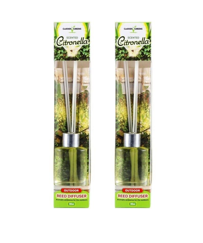 2PCE Citronella Reed Diffusers With Glass Jars Repellent Garden Greens 30ml