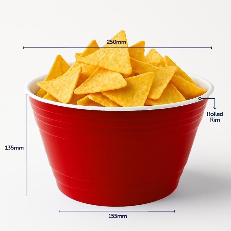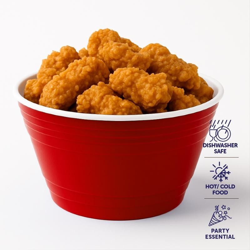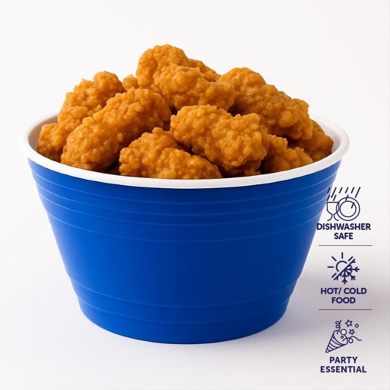 Add a pop of vibrant American blue & Red to your table setting with this versatile reusable plastic bowl. Perfect for parties, picnics, BBQs, and everyday use, it combines style with practicality. Its durable design makes it suitable for both indoor and outdoor occasions, while the generous 4L capacity is ideal for snacks, drinks, and more.