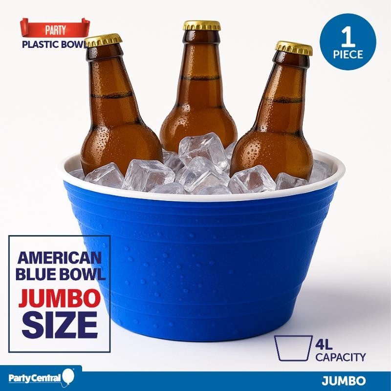 2pce Drinkware Partyware Jumbo Bowl Plastic 4L American Blue & Red 250x135x155mm