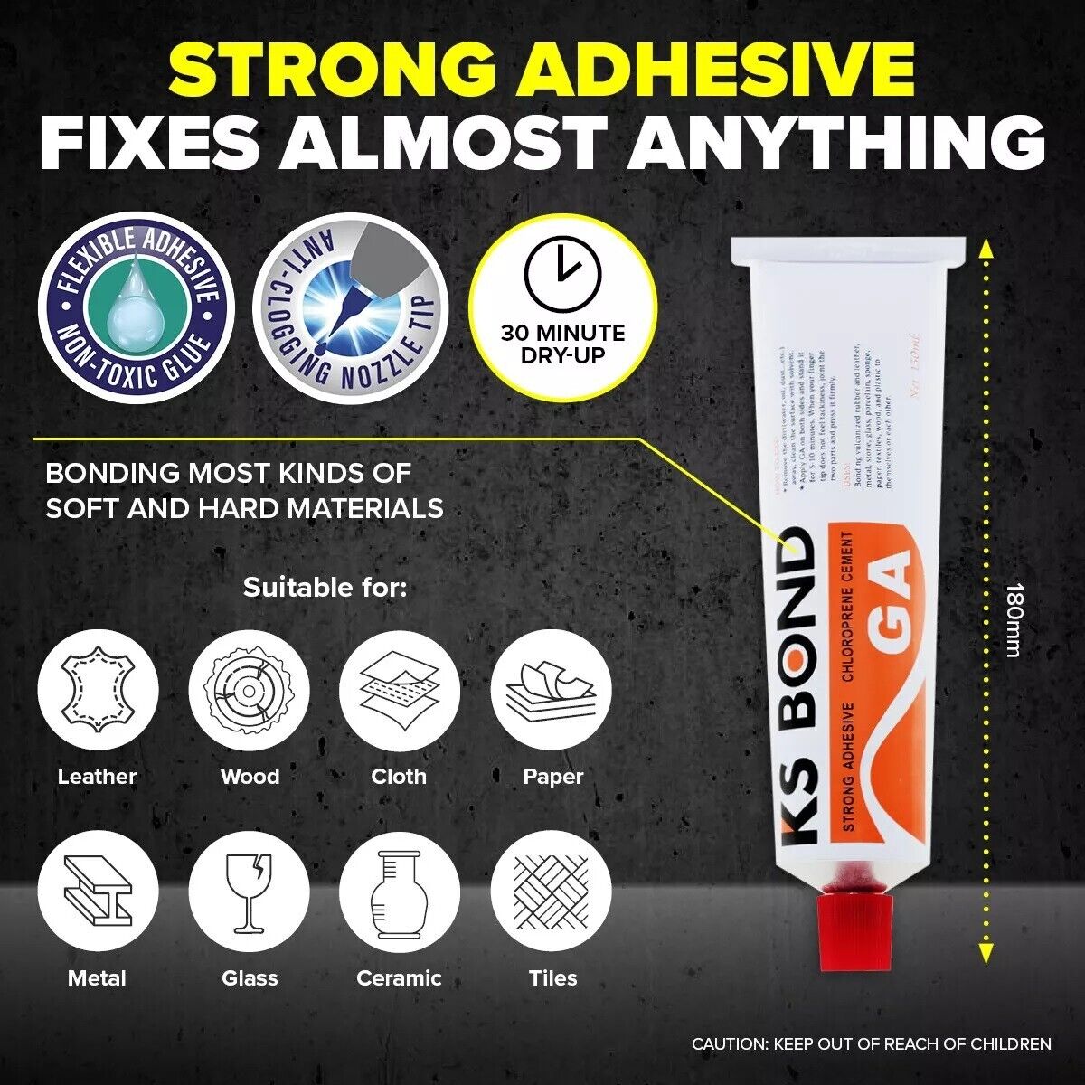 Fitted with an anti-clogging nozzle tip, this glue is easy to apply and is water resistant. Ideal for projects and repairing needs.
