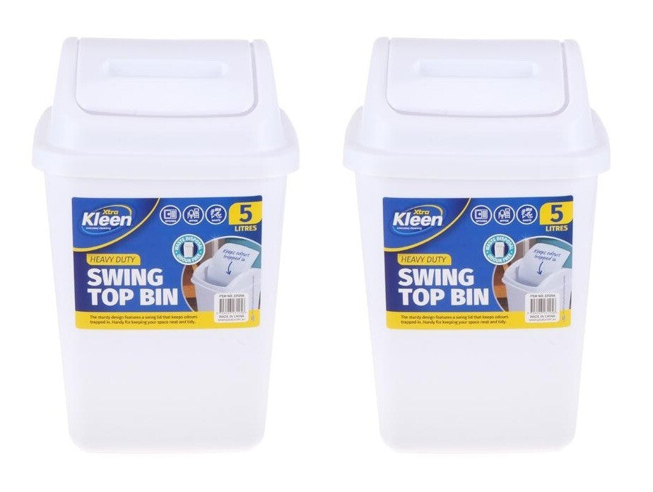 Package Includes: 2Pk Swing Top Garbage Bin White 5L
