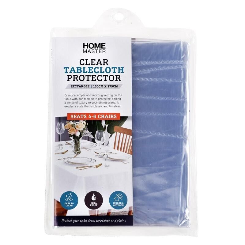 Home Master® These tablecloth protectors with polyester backing and PEVA surfaces are waterproof and reusable. Ideal for a variety of indoor and outdoor dining settings.