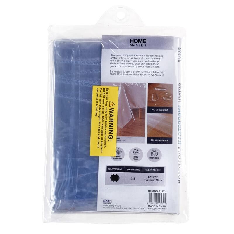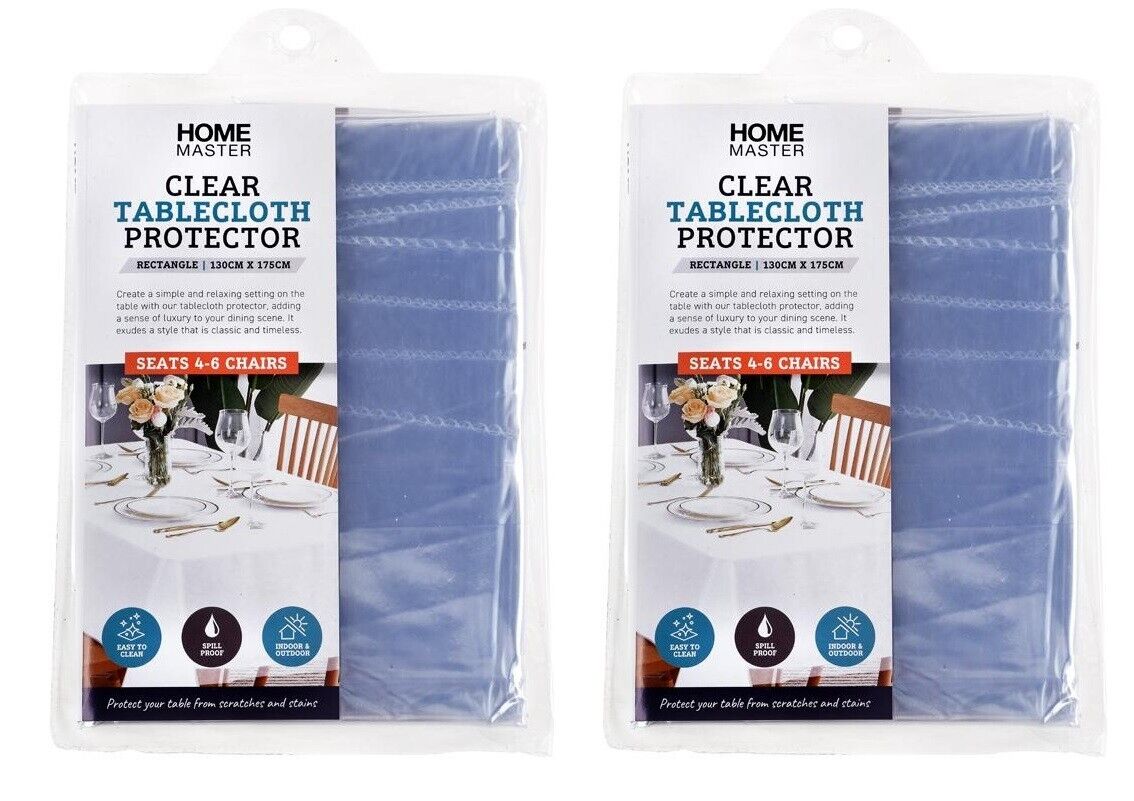 2PCE Tablecloth Protectors Clear Waterproof Reusable Home Master 130x175cm