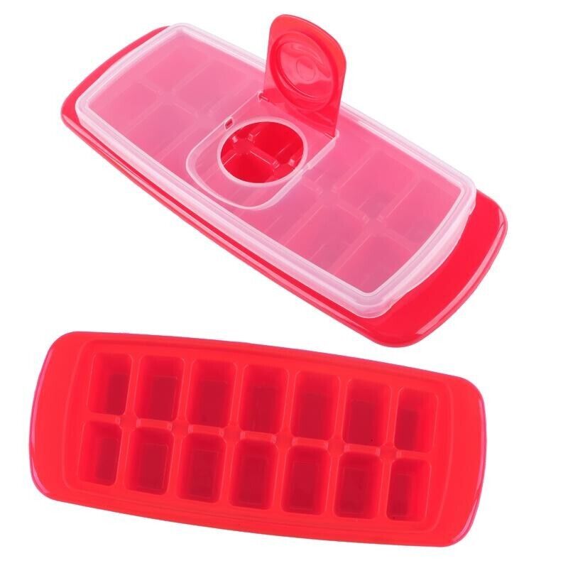 2pcs 14 Cubes Each Ice Cube Tray With Lid Top Cover Easy To Pour Section 14x29cm