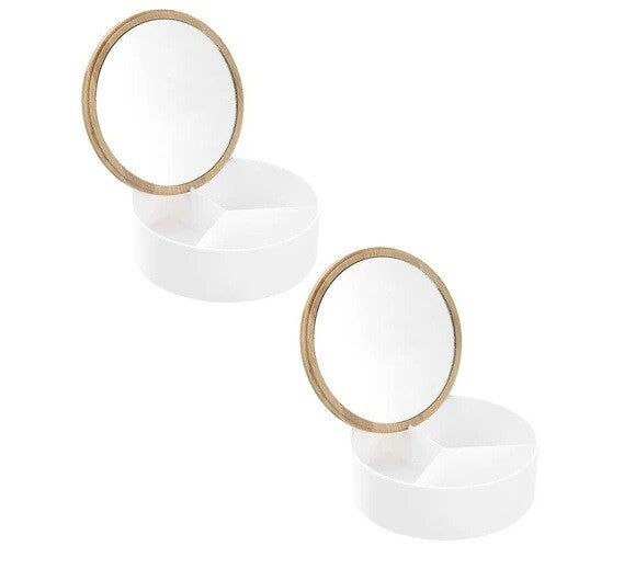 2pcs Boxsweden Bano Round 14cm Organiser Storage w Mirror Bamboo Top Home Decor