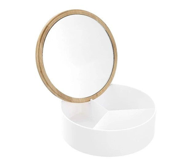Boxsweden Bano Round Organiser Box With Mirror Bamboo Top 14×14×5cm