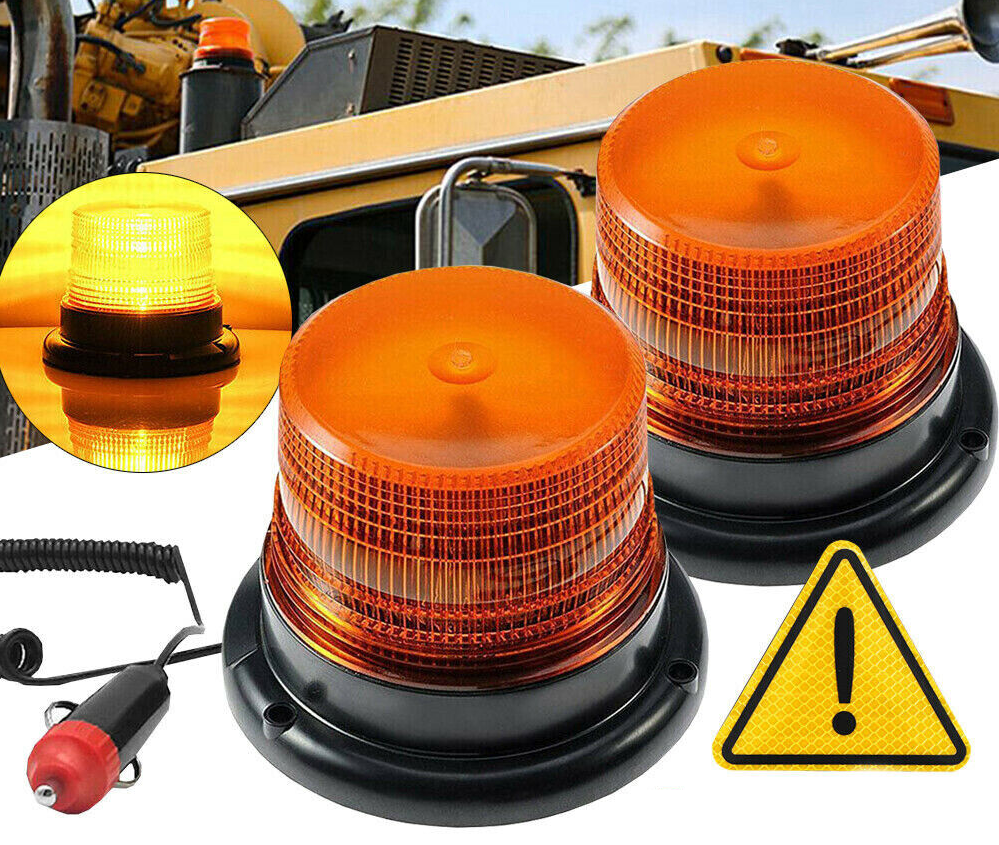 2PCS Emergency Car Beacon Strobe Amber LED Light Flashing Warning Rotating Lamp
