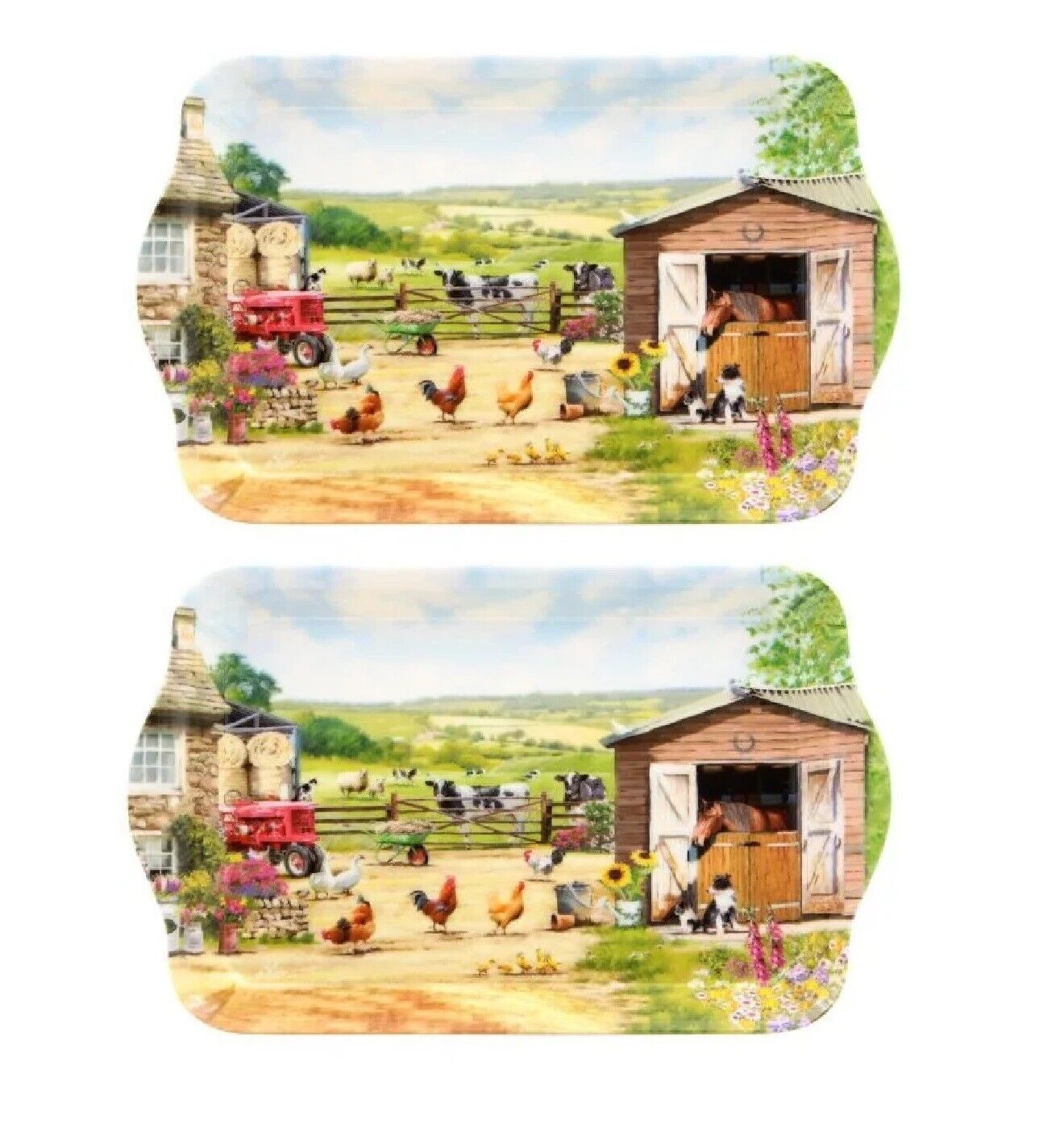 - With a beautiful Farm design, this melamine tray is easy to clean and is very durable.