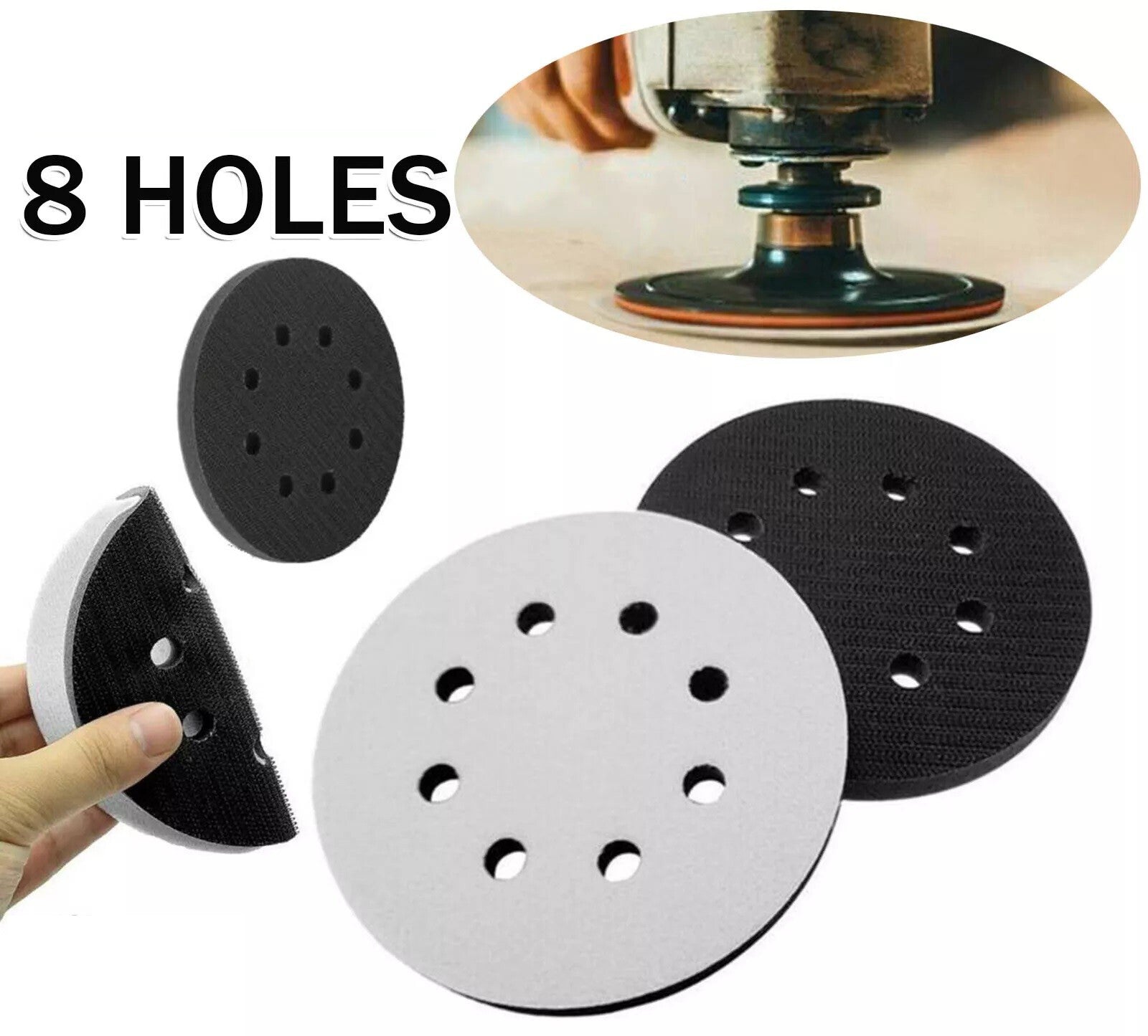 2pcs 5 inch(125mm) 8-Hole Soft Sponge Interface Pad for Sanding Pads and Hook&Loop Sanding Discs for Uneven Surface Polishing.