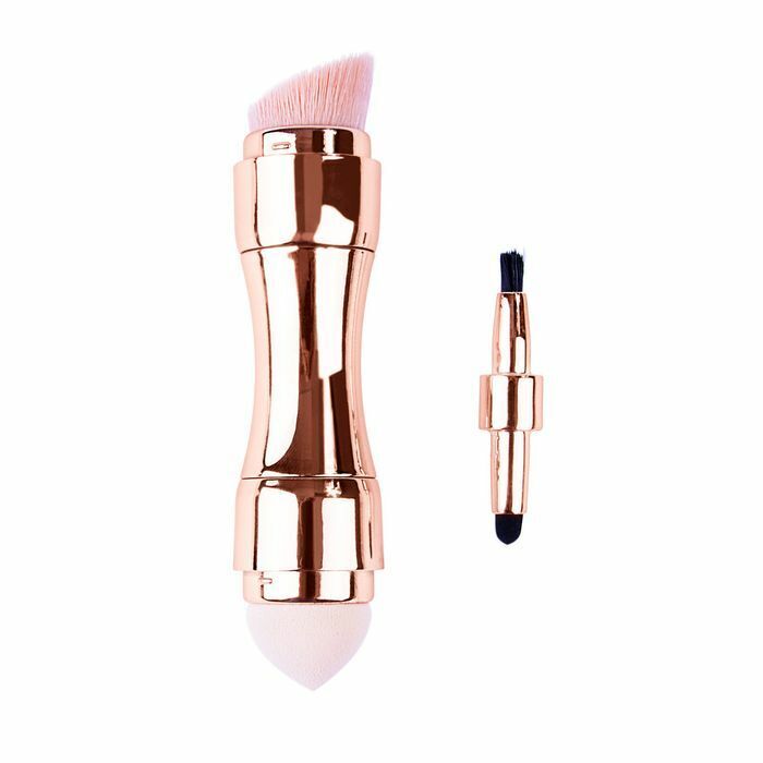 Suitable for cream, liquid or powder products the 4 in 1 compact makeup brush has it all in a small space saving size.