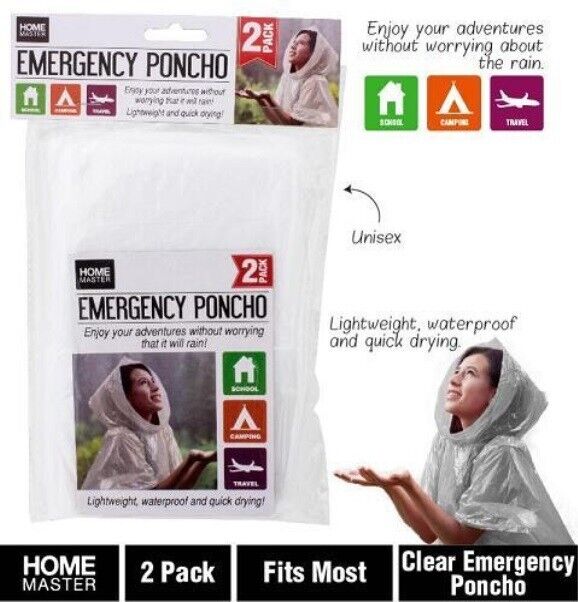 2PK Emergency Poncho Disposable Waterproof Rain Rainwear Clear
