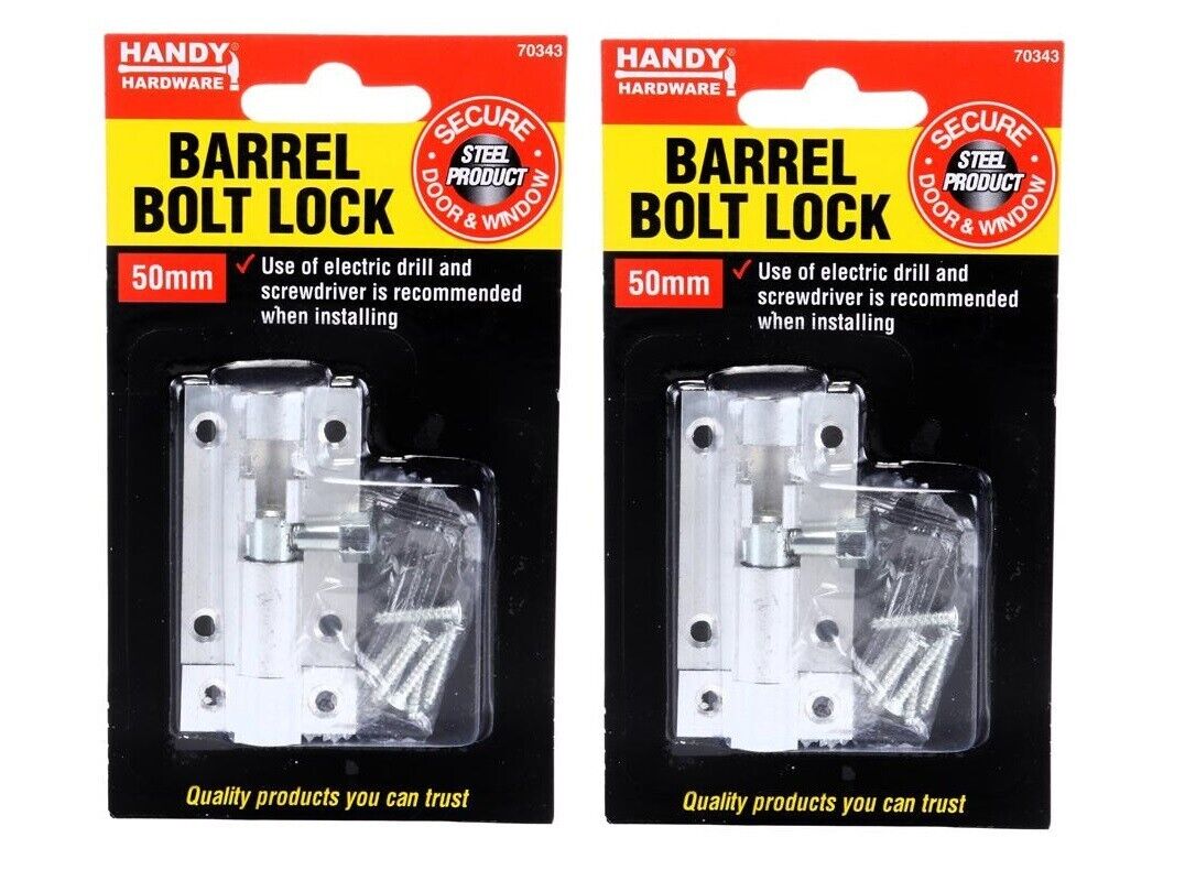 2PK Lock Barrel Bolt Stainless Steel Includes Screws Door Window Secure 50mm