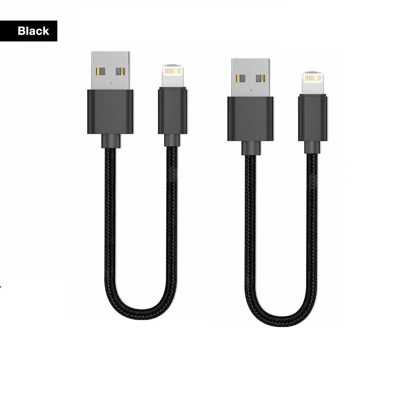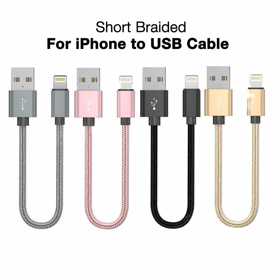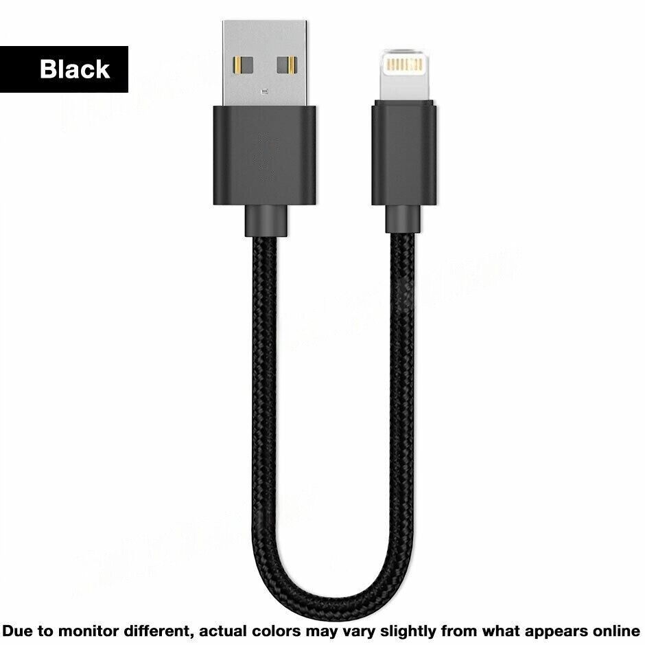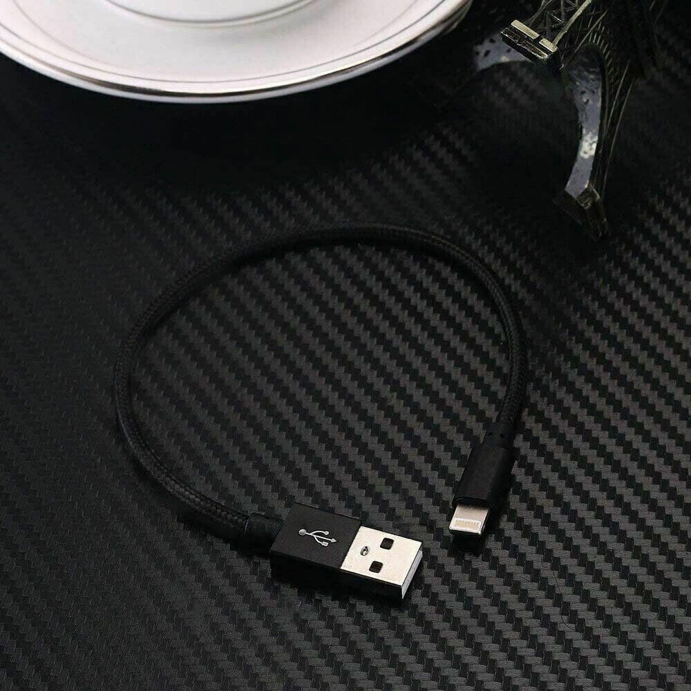 2PK Short Braided USB Charger Cable Fast Charge Cord For iPhone 25CM - Black