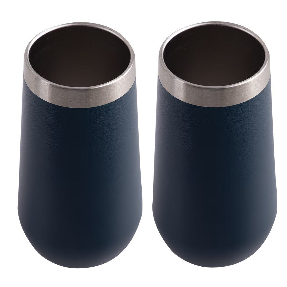 2x Insulated Double Wall Champagne Flutes Picnic Beach BBQ 180ml Matte Navy