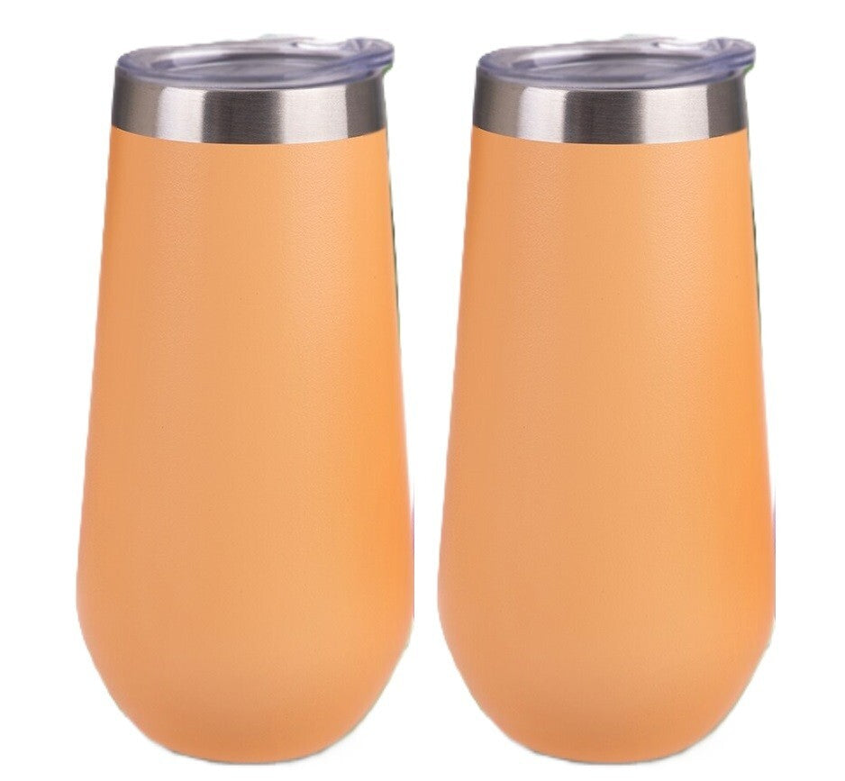 2x Insulated Double Wall Champagne Flutes Picnic Beach BBQ 180ml Matte Rockmelon